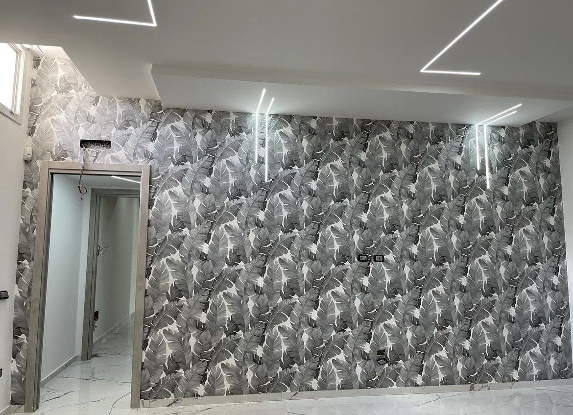 La carta da parati viene montata con estrema competenza per offrire un risultato finale soddisfacente per bellezza estetica ma anche per durare nel tempo.